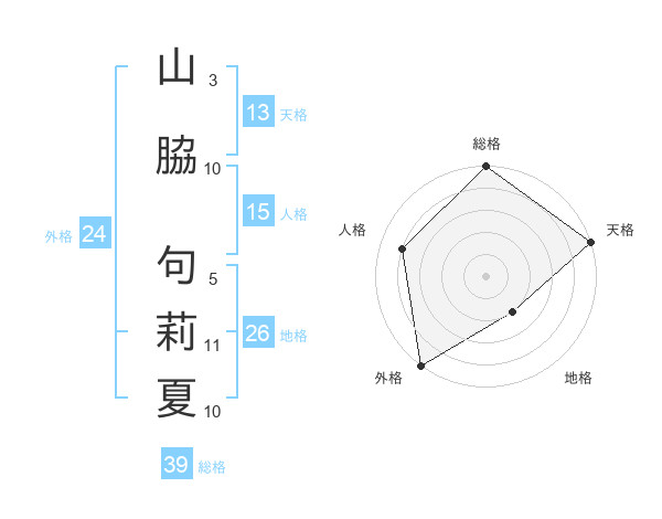 山脇 句莉夏さんの総格は39画の5点!