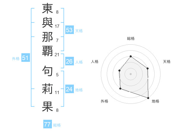 東與那覇 句莉果さんの外格は51画の3点!