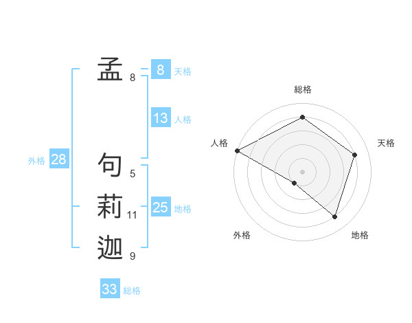 孟 句莉迦さんを姓名の画数から五運を鑑定
