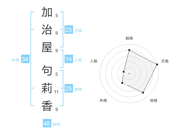 加治屋 句莉香さんを姓名の画数から五運を鑑定