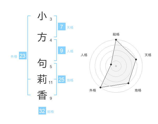 小方 句莉香さんを姓名の画数から五運を鑑定