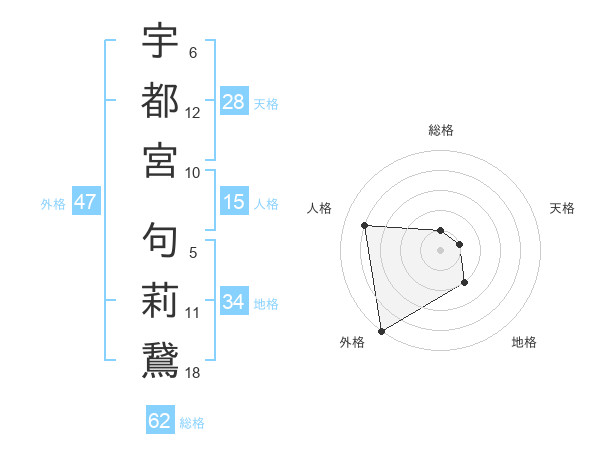 宇都宮 句莉鵞さんの外格は47画の5点!