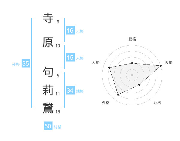 寺原 句莉鵞さんを姓名の画数から五運を鑑定