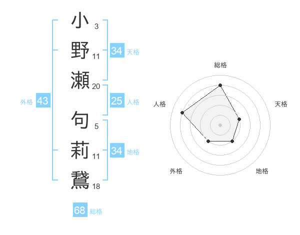 小野瀬 句莉鵞さんの総格は68画の4点