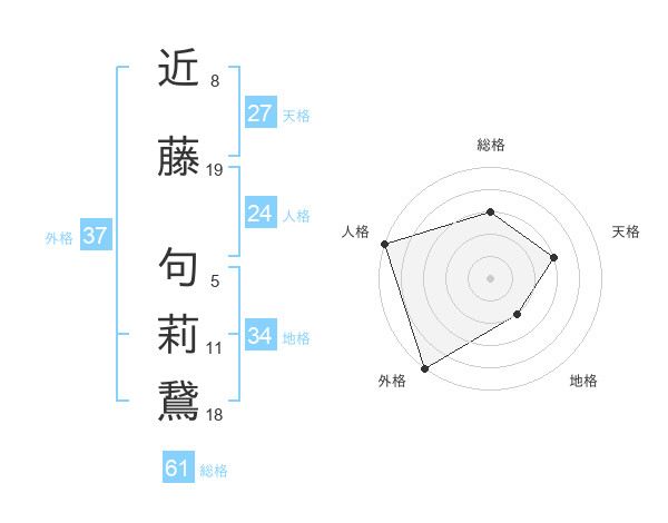 近藤 句莉鵞さんを姓名の画数から五運を鑑定