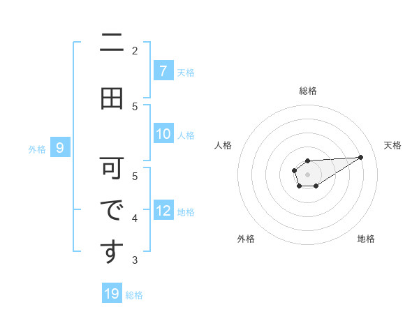 二田 可ですさんの天格は7画の4点!
