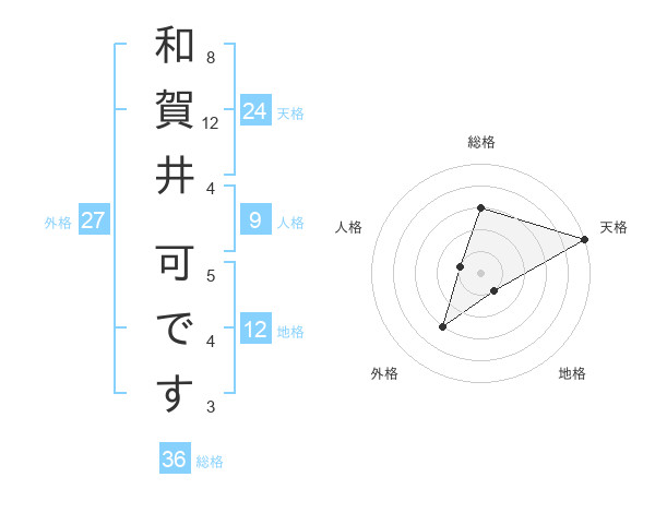 和賀井 可ですさんの総格は36画の3点!