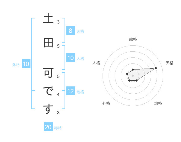 土田 可ですさんの総格は20画の1点!