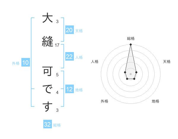 大縫 可ですさんを姓名の画数から五運を鑑定