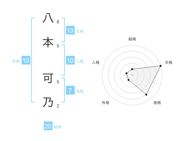 八本 可乃さんの総格は20画の1点!