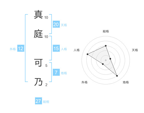 真庭 可乃さんの天格は20画の1点!