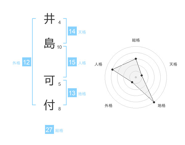 井島 可付さんの総格は27画の3点!