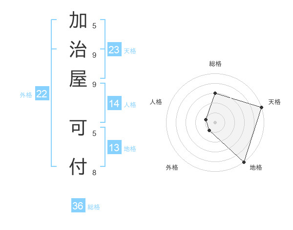 加治屋 可付さんを姓名の画数から五運を鑑定