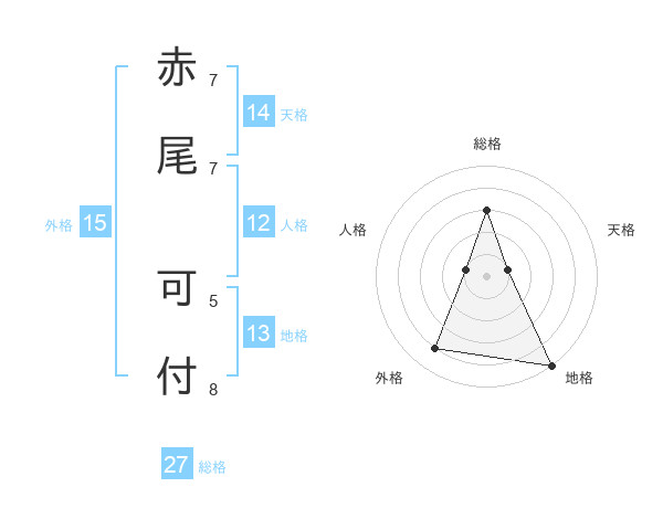 赤尾 可付さんを姓名の画数から五運を鑑定