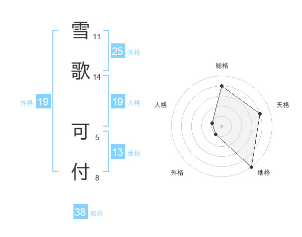 雪歌 可付さんを姓名の画数から五運を鑑定