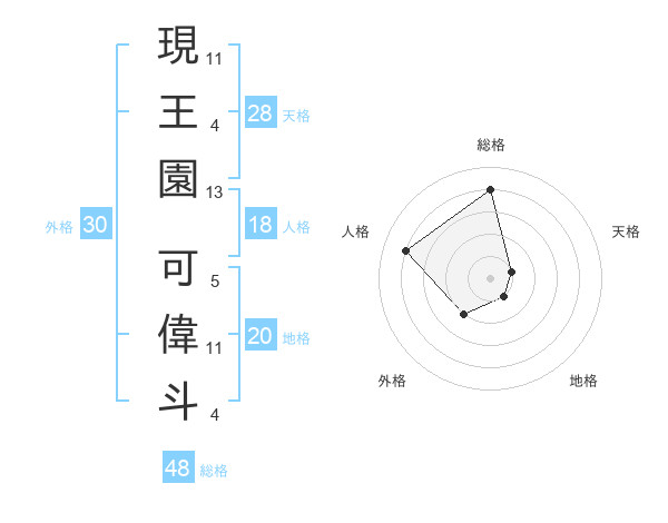 現王園 可偉斗さんを姓名の画数から五運を鑑定