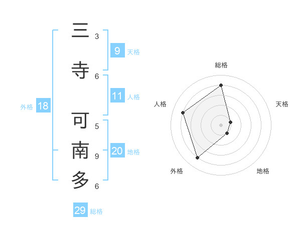 三寺 可南多さんの総格は29画の4点!