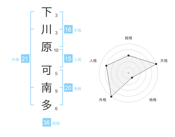 下川原 可南多さんを姓名の画数から五運を鑑定