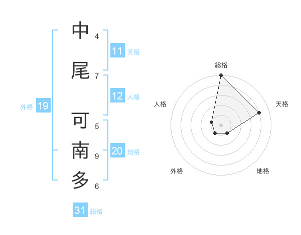 中尾 可南多さんを姓名の画数から五運を鑑定