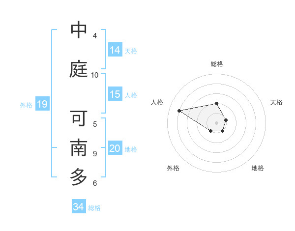 中庭 可南多さんの総格は34画の2点!
