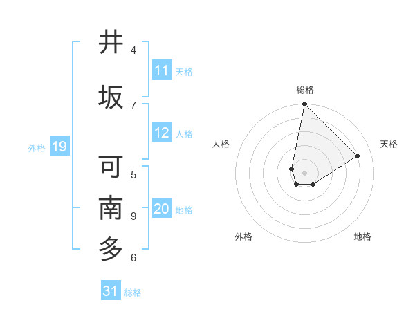 井坂 可南多さんを姓名の画数から五運を鑑定
