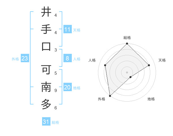 井手口 可南多さんを姓名の画数から五運を鑑定