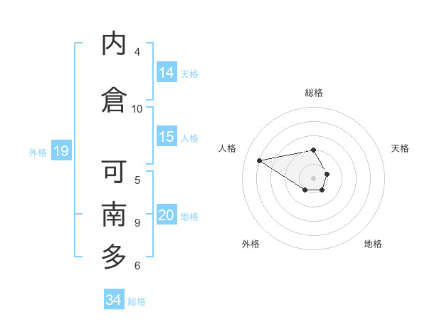 内倉 可南多さんの総格は34画の2点!