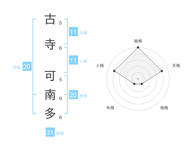 古寺 可南多さんの総格は31画の5点!