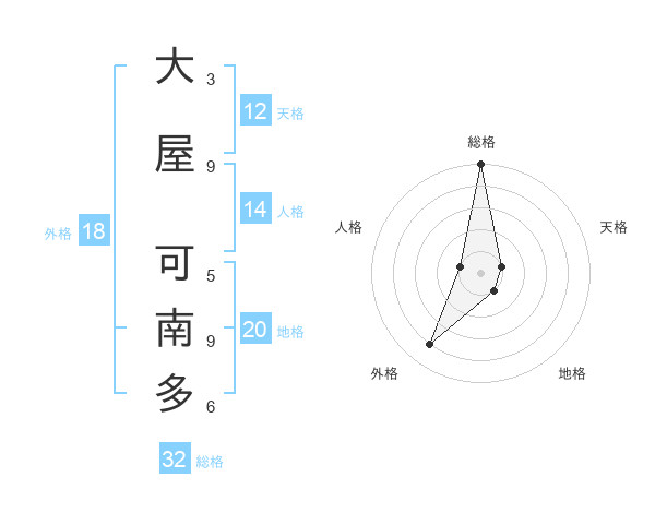大屋 可南多さんを姓名の画数から五運を鑑定