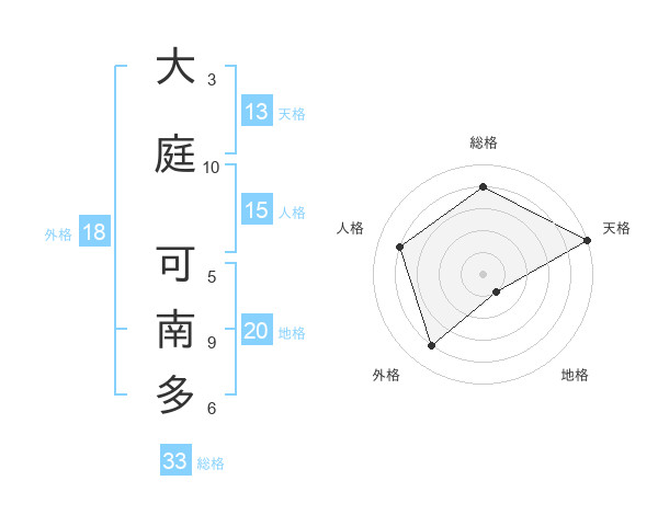 大庭 可南多さんの天格は13画の5点!