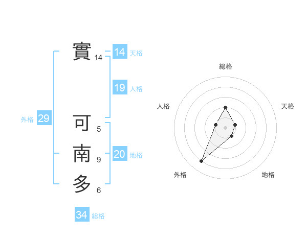 實 可南多さんの総格は34画の2点!