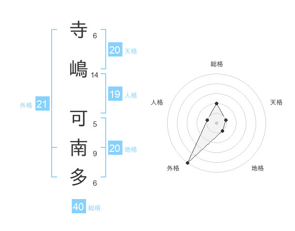 寺嶋 可南多さんの総格は40画の2点!