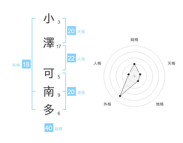 小澤 可南多さんを姓名の画数から五運を鑑定