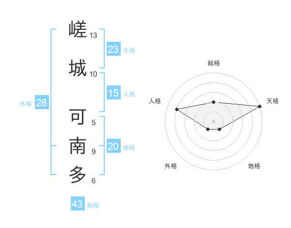 嵯城 可南多さんの天格は23画の5点!