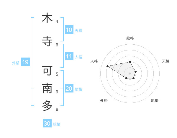 木寺 可南多さんを姓名の画数から五運を鑑定