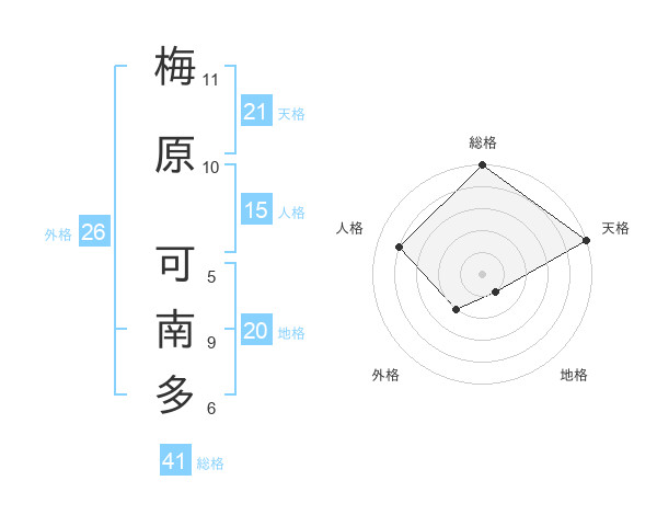 梅原 可南多さんの天格は21画の5点!