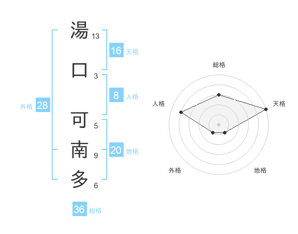 湯口 可南多さんを姓名の画数から五運を鑑定