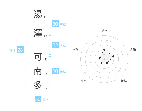 湯澤 可南多さんを姓名の画数から五運を鑑定