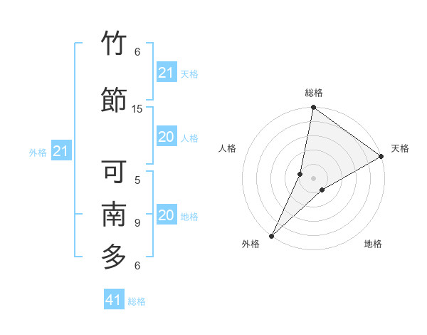 竹節 可南多さんを姓名の画数から五運を鑑定