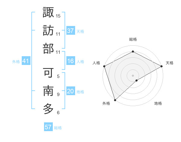 諏訪部 可南多さんの総格は57画の4点!