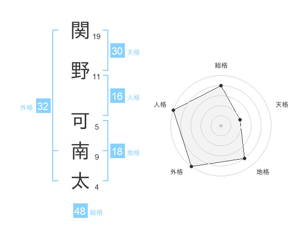関野 可南太さんの外格は32画の5点!