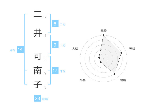 二井 可南子さんの総格は23画の5点!