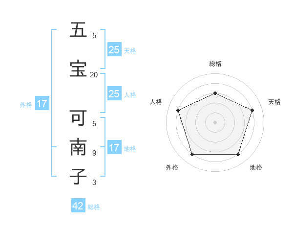 五宝 可南子さんの天格は25画の4点!