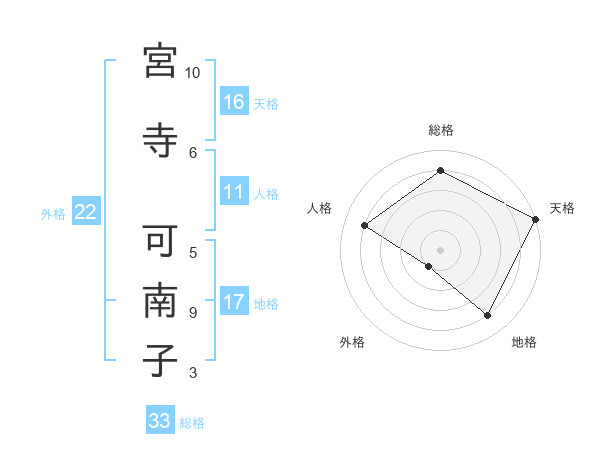 宮寺 可南子さんを姓名の画数から五運を鑑定