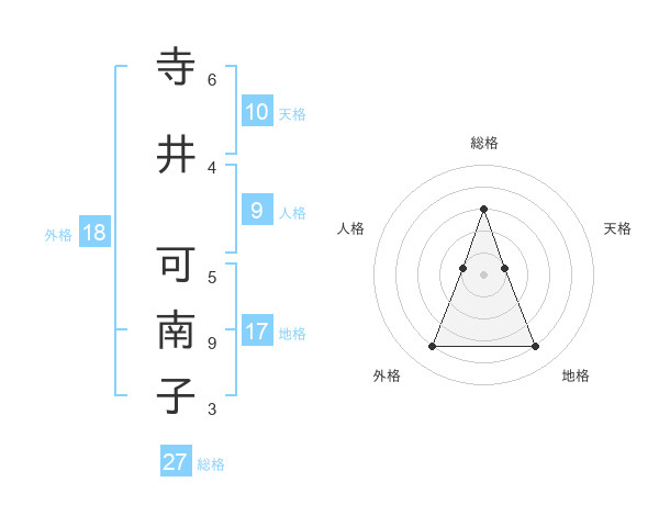 寺井 可南子さんの総格は27画の3点!