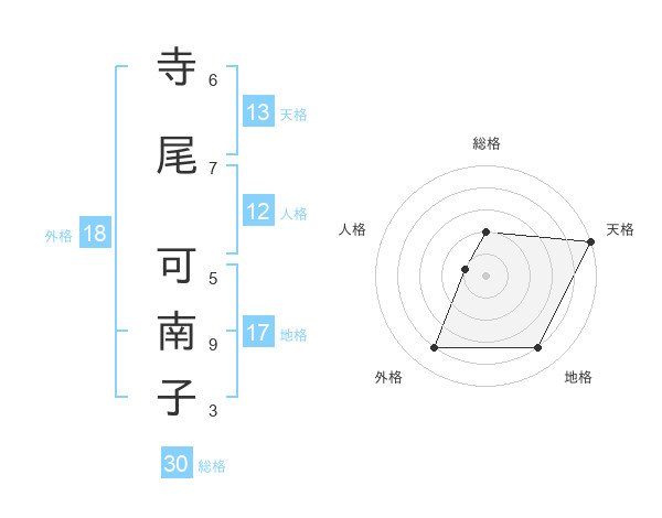 寺尾 可南子さんの天格は13画の5点!