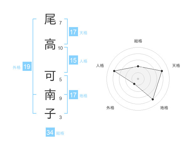 尾高 可南子さんを姓名の画数から五運を鑑定