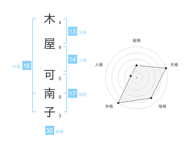 木屋 可南子さんを姓名の画数から五運を鑑定
