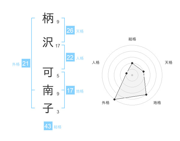 柄沢 可南子さんを姓名の画数から五運を鑑定
