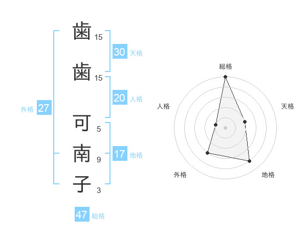 歯歯 可南子さんの総格は47画の5点!